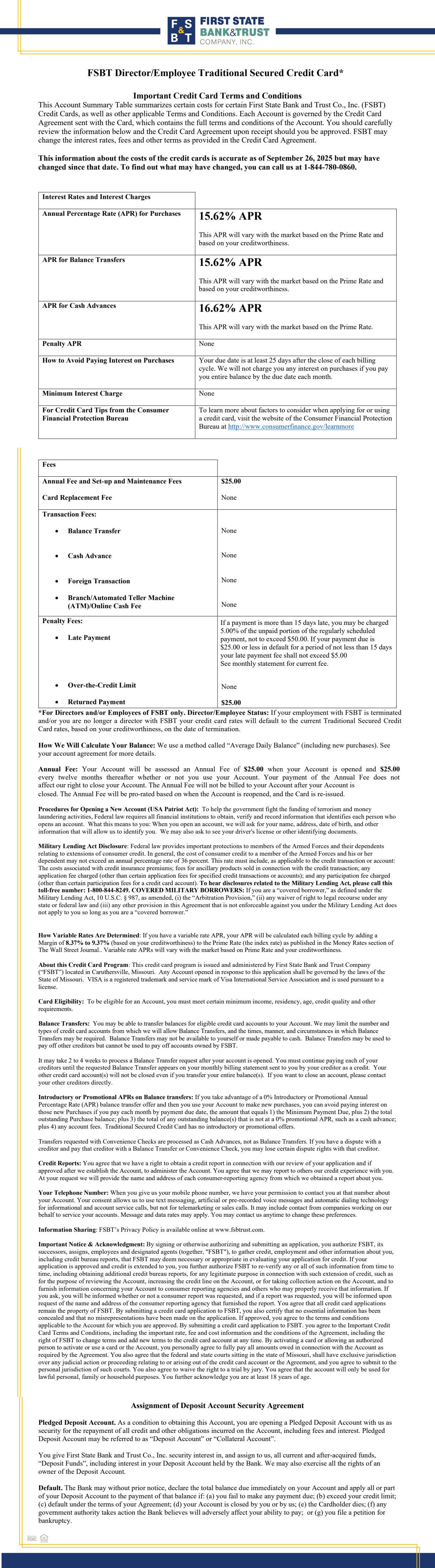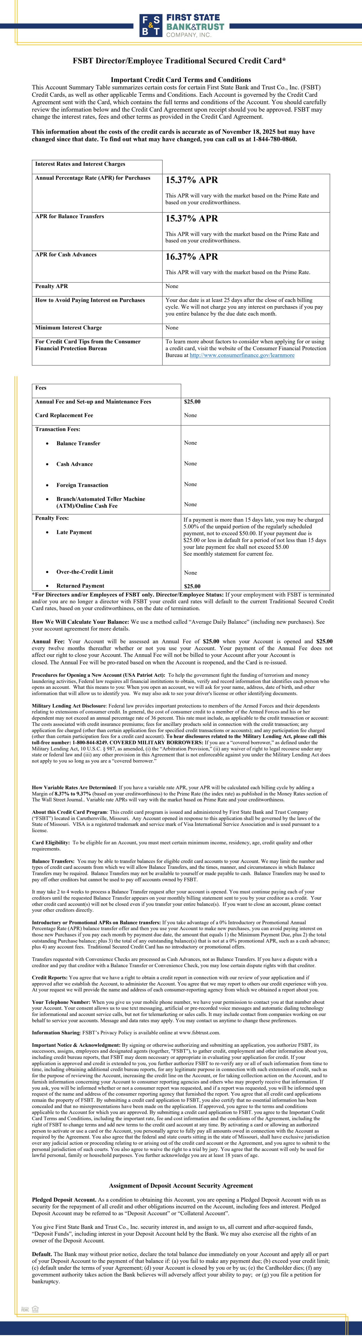 Employee Traditional Secured Credit CardTerms & Conditions