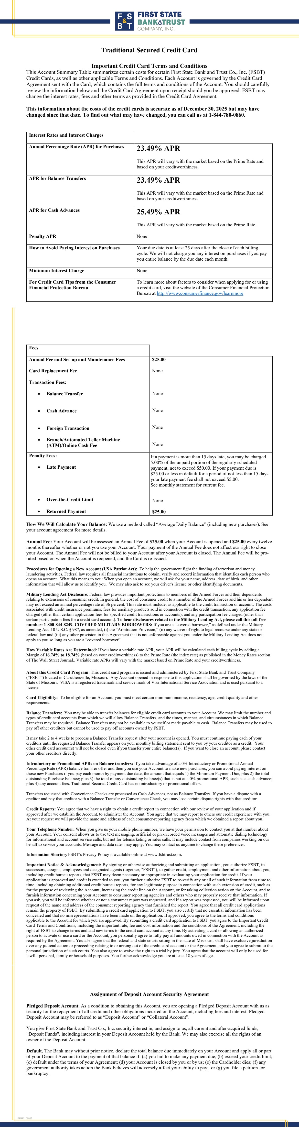 Traditional Secured Credit Card Terms & Conditions